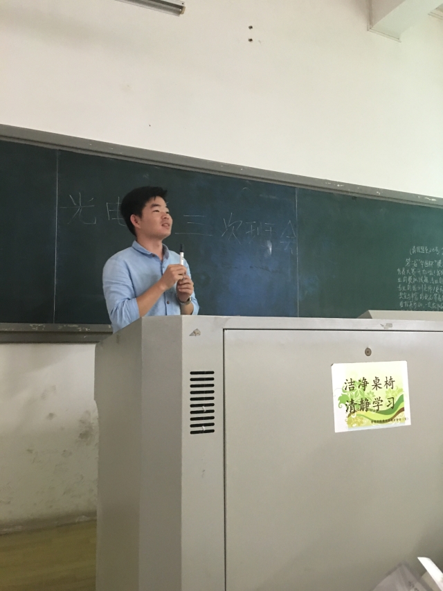 接着,便是辅导员陈小彬老师对本次班会进行点评,对我们的不足进行了讲解,例如有迟到现象、中途有冷场等现象等等,也相信我们下次班会能做得更好!最后便是班长邱耀柏同学进行总结,也主要是围绕了迟到问题和部分同学光顾着低头玩手机的问题,希望下次班会能得到进一步完善。至此,本次也在热烈的掌声中结束。