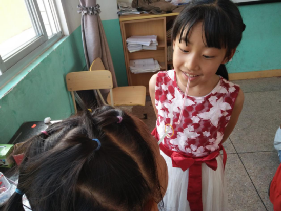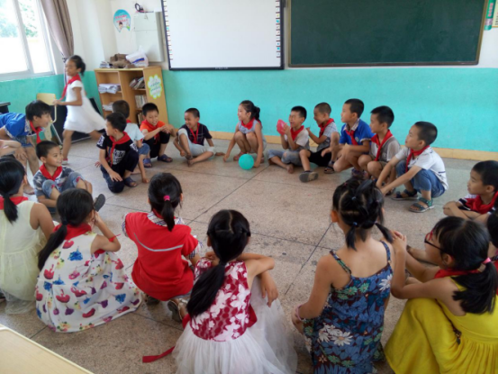 活动刚开始志愿者们还有些羞涩,但孩子们已经好奇地思索着:这些陌生的小老师究竟会给我们带来什么呢?通过志愿者们简短的自我介绍以及与孩子们的积极互动,大家很快就打成一片。志愿者们将带来的糖果和奖品发给小朋友们后就一起玩起了游戏:有的志愿者带着孩子们玩你画我猜;有的志愿者带着孩子们玩抢椅子......欢乐的氛围并没有受到炎炎烈日的影响,等阳光稍许温和,志愿者们就带着孩子们到室外进行游戏,其中有两个志愿者带着一群孩子们开展了一场5V5的篮球赛。比赛很快就热火朝天,这边一个小朋友命中一记两分球,很快对方又还了一记三分球,双方交替领先,比赛十分胶着,关键时刻一名五年级的小学生挺身而出命中最后一球,带领队伍赢得比赛的胜利。篮球场上尽是小朋友们的欢声笑语,志愿者们也为能给孩子们过一个欢快的六一儿童节感到十分开心。