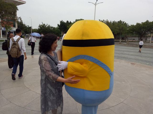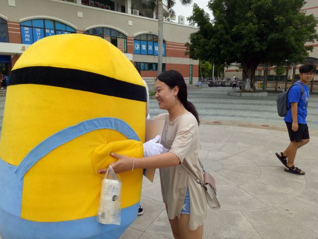 走到北区步行广场,同学们的视线马上就被一只举着牌子的“小黄人”所吸引。“假如我是一名艾滋病患者,你可以抱我一下吗?”这仅仅只是一句简单的呼吁,但却换来了无数“嘉”人的响应。活动才开始不久,便有很多同学自发上前,加入了我们的“爱的抱抱”计划,给了“小黄人”一个个大大的熊抱,同时,又自愿带上了我们在现场发放的红丝带,并承诺:“永不歧视,辱骂,甚至殴打艾滋病患者。”我认为,这不只是一句简单的承诺,更是接下来我们应该去努力,应该去切实实现的。随着时间的流逝,活动也进入了白热化阶段,前来参加的人络绎不绝。看到这样的场景,该活动负责人说,这次活动主要目的是希望可以宣传一下对待艾滋病患者应该有的正确态度,看到“嘉”人们这么积极踊跃的参与,她表示很意外,同时,又十分的感动。是啊!每个人都有爱与被爱的权利,无论对方是谁,都不应该被差别对待.......