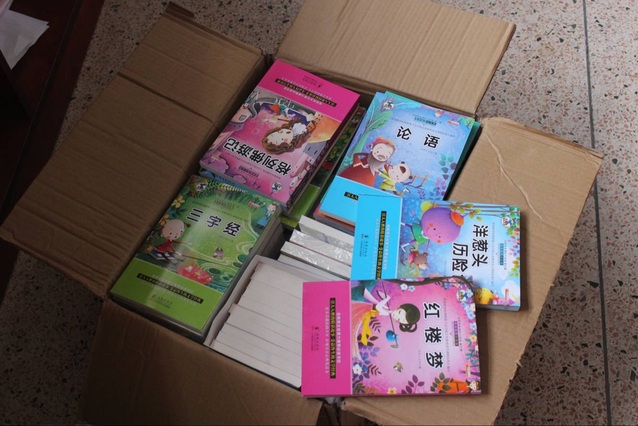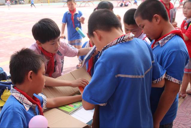 2017年5月23日,16级通信工程班班委与“希望之光”志愿者队进行了交接,将前期爱心义卖蛋糕所得约六百元换来的儿童读物交付于志愿者手中。24日,志愿者队带着近百本书籍、带着满载的爱心,来到了港尾古城小学。
