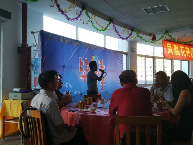 聚餐的开始,信息科学与技术学院院长谢廷贵进行了讲话,他告诉毕业生们,他代表院方热烈祝贺大家顺利毕业,在此,信息科学与技术学院举办毕业生聚餐,为马上要走上未来旅程的学生们送上最真挚的祝福和对未来最诚挚的期望。与此同时,谢廷贵院长告诉大家,厦门大学嘉庚学院是大家永远的家,在这里希望大家可以重温四年美好时光,收拾好行囊,全体教职工将目送大家走向更远的远方。