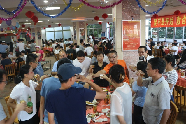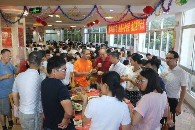 聚餐正式开始,信息科学与技术学院领导们走向学生,与学生一起畅饮,更进一步的表达了对学生们美好未来的殷切盼望。在学生向老师敬酒的环节,大家一同回忆四年亦师亦友的时光,无不感慨万千。
