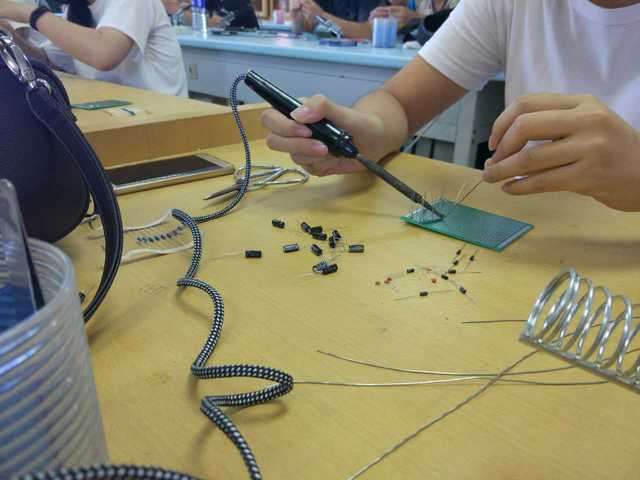 实践周第二周,校历第21周,课程内容为硬件基础训练。本周需要16光电学生完成焊接万用表并制造出一个灯丝工艺品。第一天上课,因为16光电的同学们接触硬件知识的机会不多,为了使同学们对硬件知识尽快了解并熟悉起来,邱雪莲老师对硬件基础知识进行完备的介绍,并且还着重强调了实验的方法、规范要求以及注意事项。为了保障实验过程中的安全性,还分发口罩给同学们佩戴。尽管焊锡丝过程会产生难忍的气味,但同学们都毫不怨言地坚持下去,看着自己的焊接成品,同学们都为自己的坚持感到自豪。黄利元老师与邱雪莲老师除了认真讲解要点外,还在学生实验过程时细致地检查,以防意外发生。