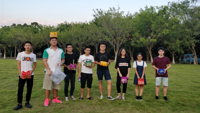 在游戏全部结束后,大家围坐在一起看同学们的才艺展示,为表演的同学鼓掌喝彩,与此同时辅导员助理们也在紧张的整理游戏结果。一二三名确定后,对于迟到同学还有惩罚整蛊即吃芥末饼干,为警示同学要有时间观念,做事要有条理将时间安排妥当。对于最后一名的小组也进行了小小的惩罚即吃苦瓜。
