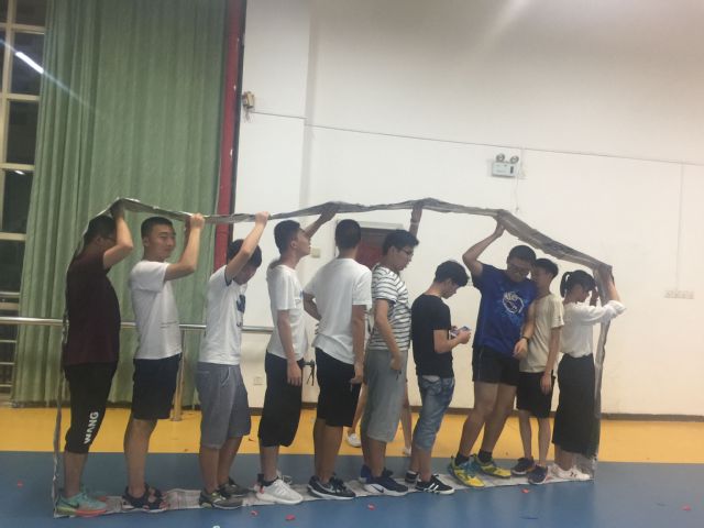 新的学期,新的生活。为了让全体新生能够相互认识,促进学生之间的相互交流沟通能力。2017年9月16日,17级电子信息工程的新生在风雨球馆开展了一场妙趣横生的团训活动。 晚上7点半新人们在风雨球馆集合,历时2个小时完成所有活动内容。