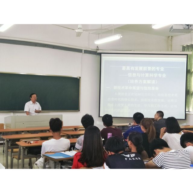 教授的讲话让新生们受益匪浅,更全面的认识到了信息与计算科学专业的发展潜能,为增强了专业学习信心。最后教授为我们赠言了一道人生数学题:勤奋+开拓=聪明,学习+实践=天才,竞争+求索=机遇,实力+拼搏=成功,才能+创新=卓越,成功+奉献=幸福。