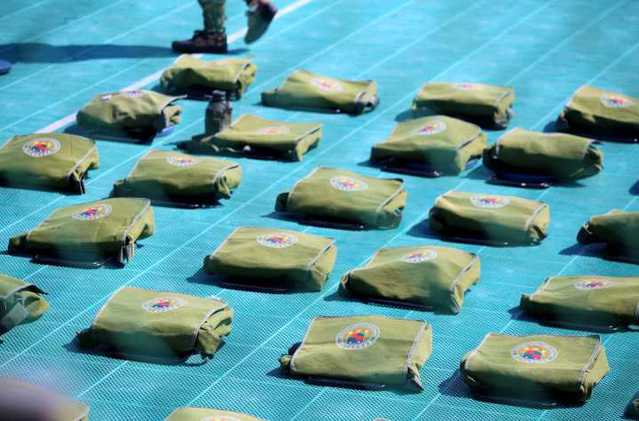 10月22日下午2:45,17全体新生穿戴整齐,在北区操场进行交兵仪式,四个营的新兵们排列整齐,士气高昂,等待教官和校领导们的检阅。首先,校领导和教官们依次对四个营发布命令,强调军训对锻炼毅力、磨练心性的重要性,只有经过军训,才能使同学们更好地应对以后的学校生活,养成良好的习惯。检阅完毕后,校领导亲自将厦门大学嘉庚学院学生军训团团旗交给营长们,宣布嘉庚学院2017级新生军训正式开始。
