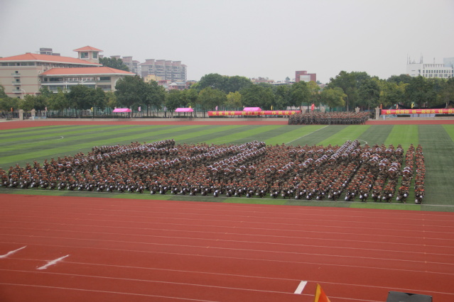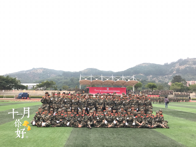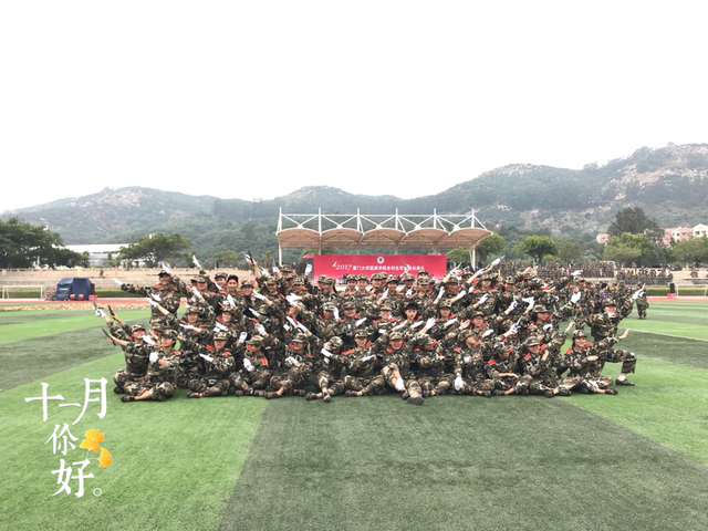 2017年11月4日早上九点,万里无云,微风习习,此时的北区操场早已坐满了身着迷彩服的同学们,2017级全体军训学生齐聚一堂。此时此刻,厦门大学嘉庚学院2017级新生军训结业典礼已经开始了。