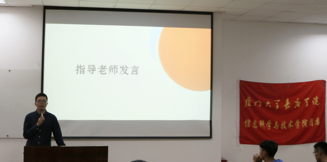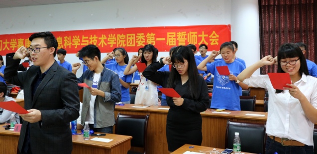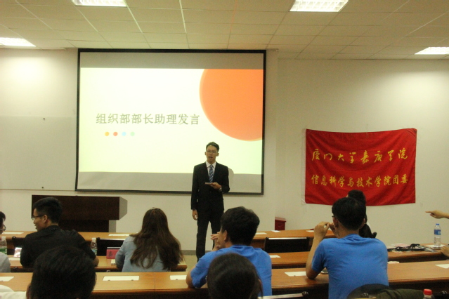 11月9号中午12:30,中国共产主义共青团厦门大学嘉庚学院信息科学与技术学院委员会在理工大楼210召开了第一届团委誓师大会,出席本次会议的嘉宾有:信息科学与技术学院团委指导老师——史扬、第四届团建中心主席——洪宇、第四届青年志愿者队主席——吴伟宁,大会由信息科学与技术学院团委组织部齐泽成和许丽莎主持。