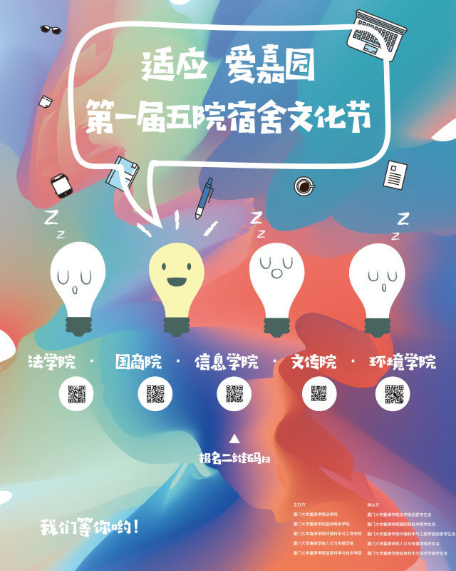 为深入学习党的十九大精神,丰富校园文化生活,营造一个美好和谐的宿舍环境,经过一段时间的紧张筹备,由厦门大学嘉庚学院信息科学与技术学院、国际商务学院、人文与传播学院、法学院和环境科学与工程学院(此排名不分先后)联合举办的首届“五院”宿舍文化节将于2017年11月13日正式启动。