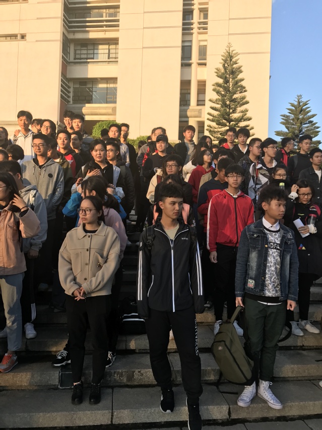 11月27日清晨,全校各个院系代表齐聚主三升旗台,进行升旗活动。六点五十左右开始清点人数,七点十分开始升旗仪式,16电子一二班均有自愿参加并全部到场。