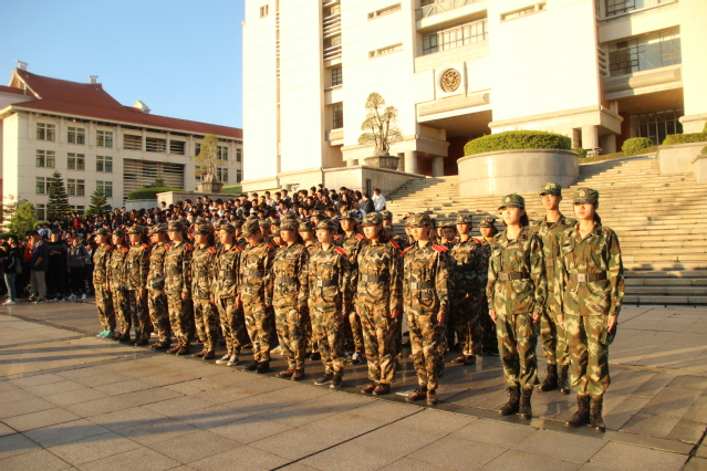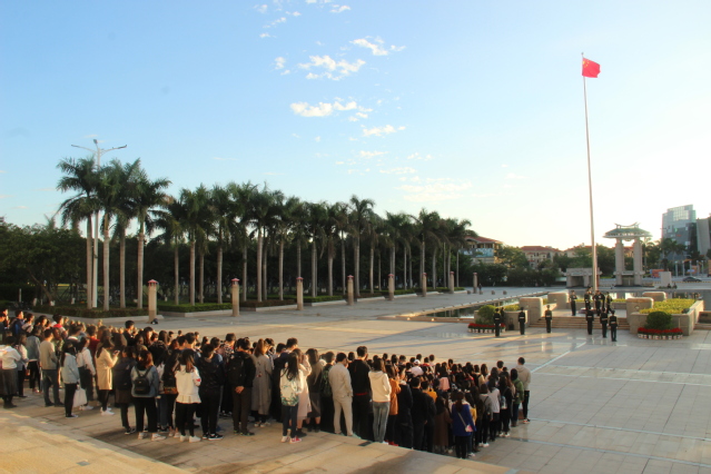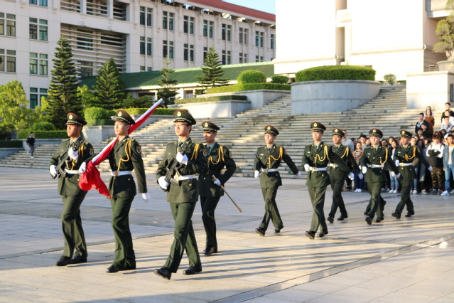 为阐述习近平总书记在十九大报告中提到“青年兴则国家兴,青年强则国家强”的观点,2017年11月27日星期一早上6:30,信息科学与技术学院团委组织部举行“追梦十九大·畅想新时代”升旗仪式。彼时太阳尚未升起,百余名同学都已早早的站在南强广场上,神色庄重的等待着升旗仪式的开始。