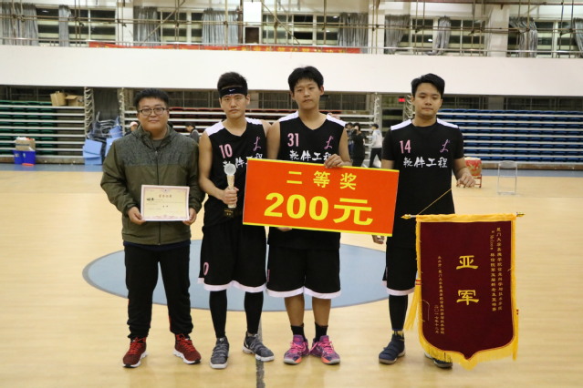 在雷门鼓队的精彩擂鼓表演后,本次篮球赛决赛正式开始。比赛一开场,软件工程的同学就率先夺球,组织进攻,双方你来我往几回合后,物联网的8号队员在队友的掩护下发起进攻,成功拿下本场比赛第一分。随后伴随着场上的一次次进球,场下的观众也给自己喜欢的球队呐喊助威。当比赛进入到了第四小节时,双方队员逐渐将比赛推向白热化。15物联网仍保持着领先10分的优势,这使得15软件工程的同学倍感压力,更加雪上加霜的是15软件工程的两元大将先后受到轻微创伤,随着比赛终结哨声的吹响,15软件工程以7分之差惜败。2015级物联网专业获得了本次比赛的冠军,其队员张彬彬荣获本届信息科学与技术学院新老生篮球赛的MVP。