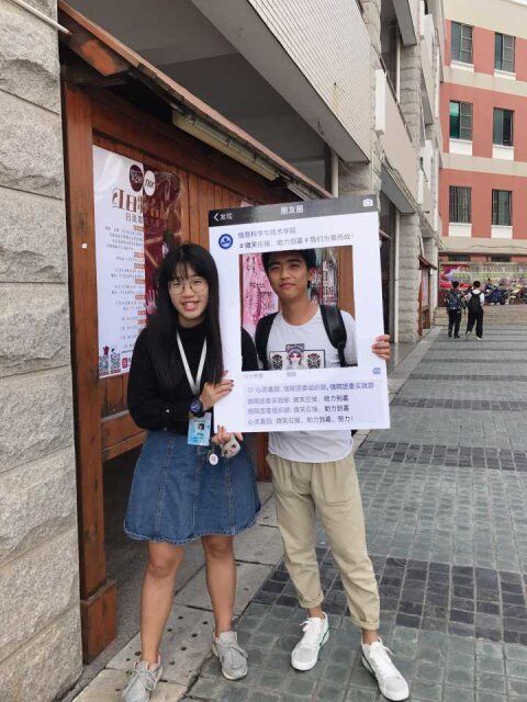 在嘉庚学院校内,部员们简单向嘉人们普及抑郁症相关知识,号召嘉人们参与“关爱抑郁症”活动,留下微笑照片,用微笑照片为抑郁症患者应援。嘉人们与穿戴着玩偶服装的部员一起合影,微笑的力量,嘉人的力量。活动时间虽然有限,但在嘉人们的热心参与下和部员们的努力下,本次活动定格了数百个微笑瞬间。