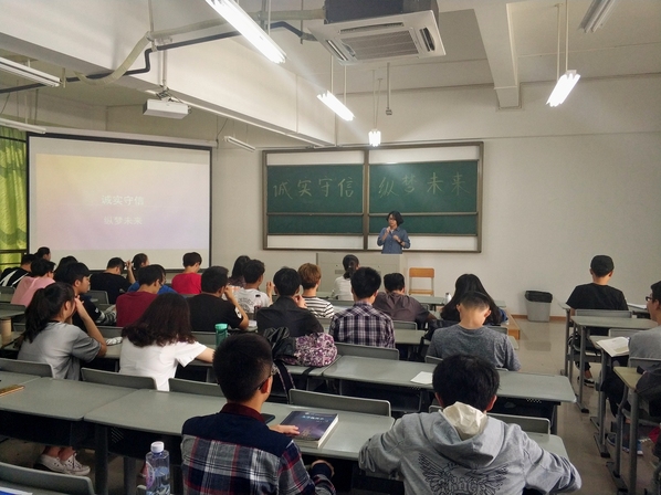夏天的炎热逐渐向我们逼近,不知不觉我们已经度过了半个学期。面对即将到来的期中考,于2018年4月11日的下午14:30在理工楼305b教室召开了关于诚信主题班会,来强调关于考试的注意事项。出席本次班会的有4位助导以及17通信全体学生。
