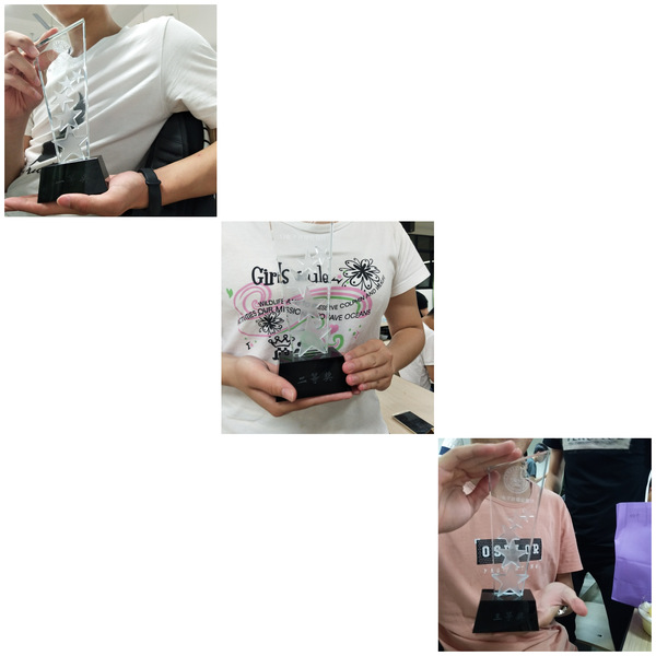 宋艳同学按照活动开展的时间顺序回顾此次班级公益行的内容。首先是活动初期全班同学书写的涉及校园暴力相关影片的观后感;其次是举办了与校园暴力相关的法律法规的知识竞赛,还根据比赛结果专门置办了相应奖品;紧接着是为其蓄力已久的活动,前往晓新小学为小朋友们普及有关抵御校园暴力的宣讲,其中播放的小视频为其自制的成果;最后为本次一行画上休止符的是北区广场的传单和横幅宣传。从策划到执行活动的150天左右的时间里,于官方微博申请#17电子班级公益行#超级话题,34条博文的跟进记录与宣传,获得了1.6万的阅读量。另通过了问卷星和H5的推广传播,来自全国各地2184同好的点亮都成为支持着本次公益行前行的动力源泉。除了对活动内容的介绍,班长还秉承着奖惩分明的原则对积极参与的同学颁发了奖杯。