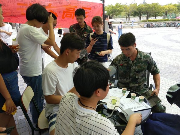 活动开始由负责人杨婉婷的安排分工,中午由张芳宁和张嘉凯发放本次反馈活动的传单,王雨薇与刘静瑶为需要的嘉人量血压,因为天气炎热,酷暑难耐,所以赞助商大通冰室特意提供的免费柠檬水给来量血压的同学们解暑降温,十分贴心。晚上由齐泽成与林哲苏进行血压测量。来测量血压的同学大多数都在正常值,由此可见,三高离我们还十分遥远,但这并不代表我们的身体不存在这个隐患,为了预防三高的侵扰,大家还是要管住嘴,迈开腿。