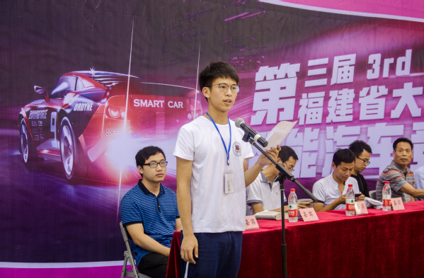 开幕式上,信息科学与技术学院院长谢廷贵首先进行了发言,他表示我校将竭尽全力做好赛事的组织与服务工作,希望通过此次竞赛,各参赛队伍都能有所提升,向智能车华南赛和国赛发起更有力的冲击。接下来,参赛选手代表宋锐宣读了参赛宣言,表示作为参赛选手定会严格遵守比赛规则和赛场纪律,赛出水平,赛出风格。然后,裁判员代表林映楠宣读了裁判员誓词,表示作为裁判员定会严格遵循公开、公平、公正的基本原则,尊重参赛者,文明裁判。至此,第三届福建省大学生智能汽车竞赛正式开始。