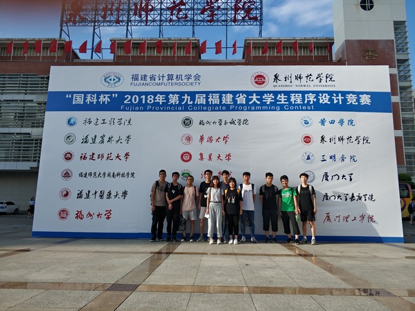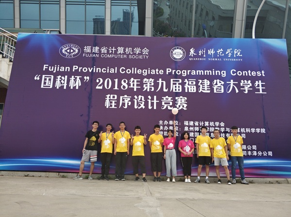 2018年6月10日下午,由福建省计算机学会主办的第九届福建省大学生程序设计竞赛在泉州师范学院落下帷幕。我院参赛队伍在本届竞赛中斩获2项铜奖(其中一支队伍获得了铜奖第三名)和1项优胜奖。