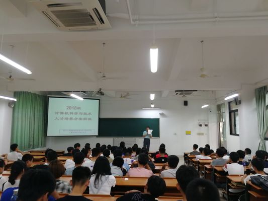 为了使2018级计算机科学与技术专业新生尽快的适应大学的学习,9月19日下午,计算机课程教研室主任张思民教授在主2#107为全体新同学做了一场专业人才培养方案的解读专题报告。