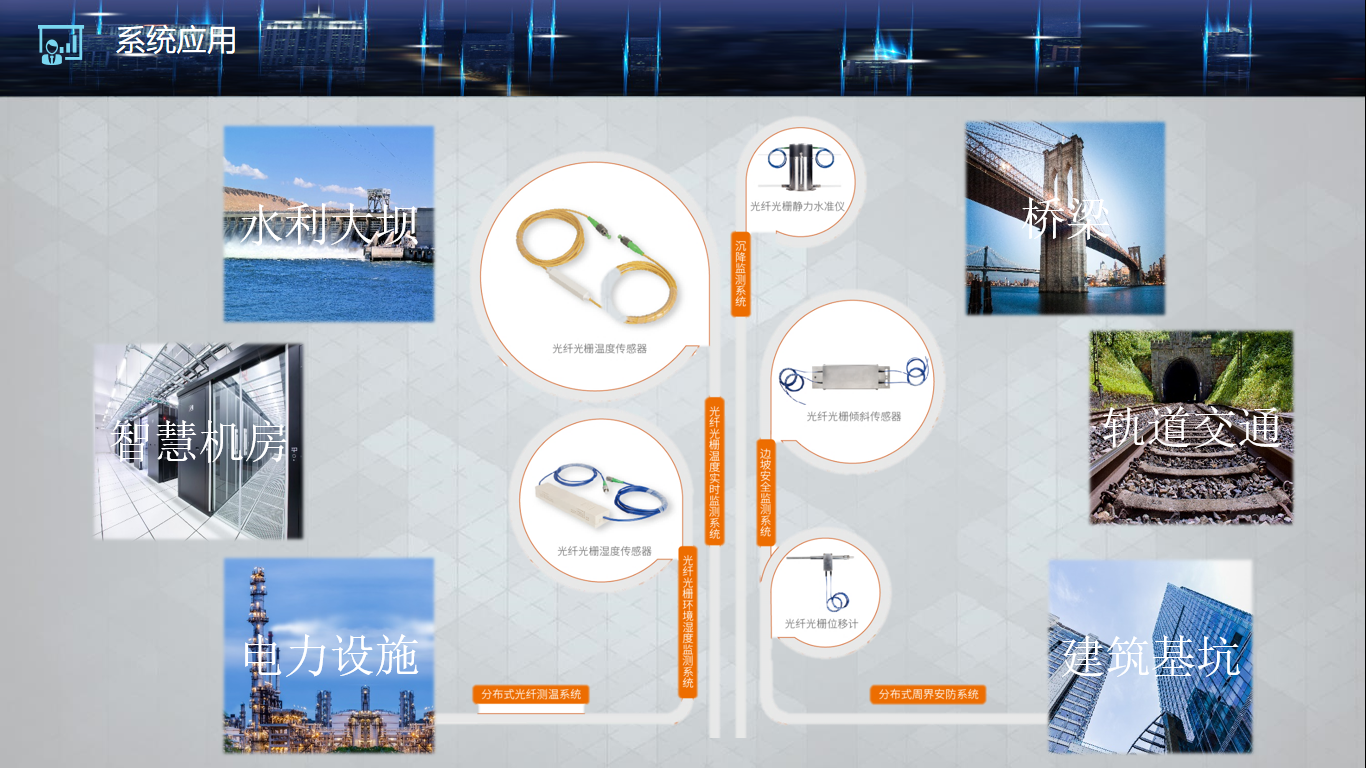 企业可为水利大坝、电力设施、智慧机房、通讯、桥梁隧道、轨道交通、城市管廊、建筑基坑、粮油仓储等多个行业提供光纤实时在线监测系统及一体化解决方案。