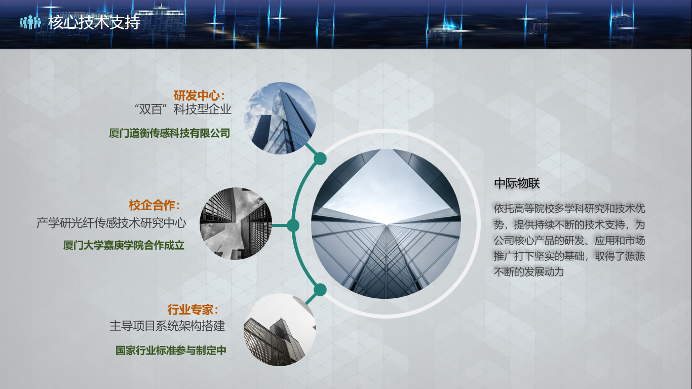 我们是什么?中际物联光纤传感技术研究中心,是中际物联科技(深圳)有限公司和厦门大学嘉庚学院合作建设的创新平台。中际物联科技(深圳)有限公司是一家致力于自主研发光纤传感监测系统所需元器件及相关技术并提供工程应用整体解决方案的综合性高科技企业。