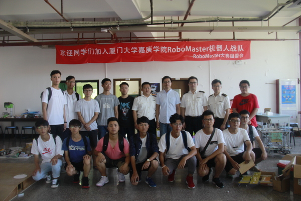 会议结束后,由信息科学与技术学院团总支指导老师史扬带领海关代表参观位于生化大楼11楼的机器人实验室。在实验室中海关代表与实验室的队员们友好互动。在机器人实验室队长覃昱程的介绍和其队员的操作演练下,海关代表体验到了机器人对抗的乐趣,也感受到了信息科学与技术学院学子的风采,他们表示:这些同学的不怕苦不怕累,不断重复、改进实验的钻研精神值得大家学习。在参观结束后,海关代表们与实验室队员们合影留念,把这以美好的瞬间定格。