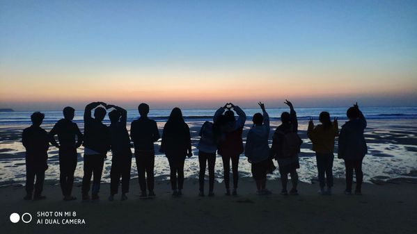 10月28日现在是凌晨四点半,天空仿佛还是昨天的,就是比昨天更冷了。迈着疲惫的步伐,但内心是开心的去看日出啦。日出小分队集结完毕,一阵又一阵的寒意袭来,还伴随着困意在漆黑的夜中漫步在海边的沙滩上,没有白天温暖的海风显得没有人情味,等待了许久也吹了冷风许久。终于天空开始泛白,蓝白蓝的出现在远方;不久天空开始掺杂其他颜色,先出现了粉色,再出现了橙色,最后出现了红色,随着红色的加深,太阳开始羞涩的映入我们的眼帘,我们开始激动,开始欢呼,开始了比等待更长久的赞叹和拍照。大自然的变幻使我们的等待变得值得,开始的寒冷变淡了,心中又涌上一股暖流,这是每一次期待的事情变成事实后的开心。也希望小伙伴们每一次的期待都能实现,每次等待都值得。