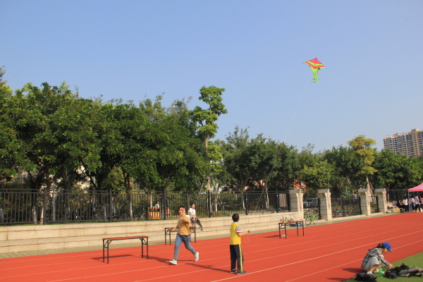 大家捧着色彩斑斓的风筝在操场上尽情地奔跑,放飞手中的风筝。放飞的过程是享受的,收线的过程是喜悦的!两个半小时也在大家的欢声笑语中悄然流逝,风筝节落下了帷幕,但五彩的风筝依然借着风高高地悬在蓝蓝的天空中……