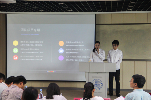 比赛进行过程中,各支队伍都指派代表为评委老师们细致地展示了各自的项目,包括团队介绍、作品介绍、设计原理、商品价值、竞争优势、财务运营现状、未来规划等几个方面。此外另有几支队伍还向评委老师们展示了他们项目的实物,使评委老师们可以更好地理解其项目,参赛的每支队伍都能很好突出自己的竞争优势同时简洁明了地阐释自身项目的理念。