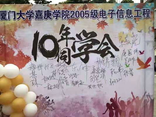 作为一名毕业十年的校友,也会时常通过各种渠道了解到母校这些年的成就,校园更大更美了,设施更完善了,各学科获得的奖项也越来越多了,我们感到自豪。同时也了解到,从嘉庚走去的同学,在自己的领域中有取得不小的成绩的人,我们也为此感到高兴。十年了,虽然各自在不同的岗位上,但是我们有一个共性,我们是“嘉庚人”,我们是“一家人”。