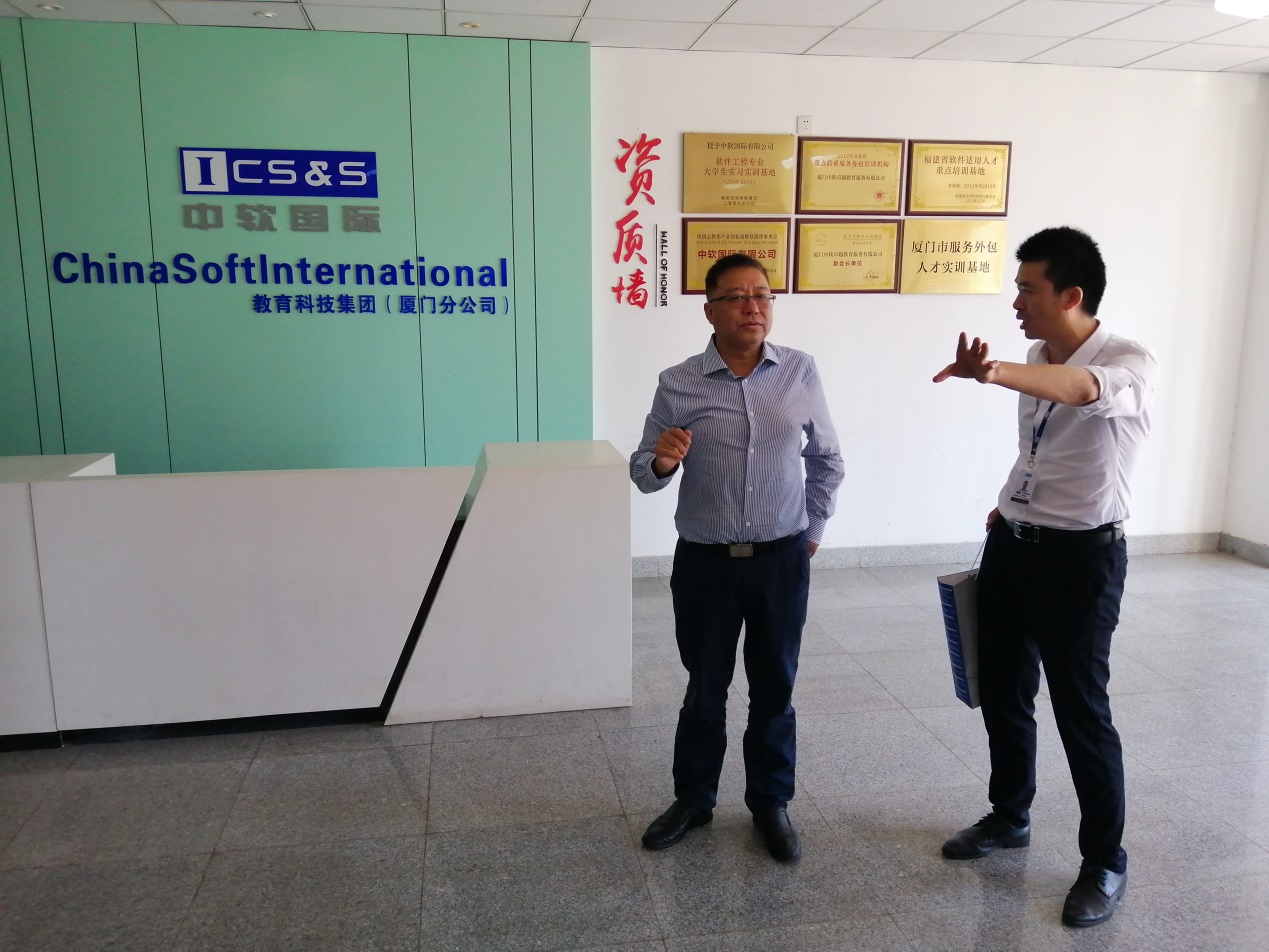 之后,夏靖波院长一行实地考察了位于厦门软件园三期的中软国际教育科技集团(厦门分公司),并参观了建设中的中软国际教育科技集团新培训基地。建设中的新基地面积达到1500平米,并配套100间标准宿舍,可满足500-600名学生同时培训。夏靖波院长详细了解了中软国际新培训基地的软硬件建设情况、高校合作实际案例、产教融合政策等信息。