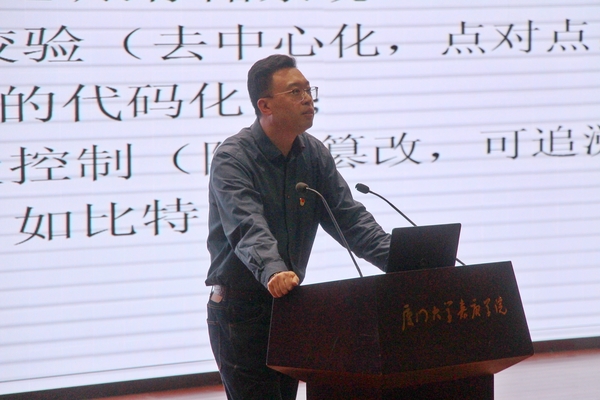 为深入学习贯彻习近平总书记在中央政治局第十八次集体学习时关于区块链的重要讲话精神,12月11日下午14:30在主楼群3号楼大报告厅举办习近平新时代中国特色社会主义思想大讲坛第十八讲,特邀信息科学与技术学院张盈谦教授作《区块链技术发展与应用》专题讲座。此次讲座由信息科学与技术学院党总支副书记姚福清主持并讲话。信息科学与技术学院信息学院党总支全体师生党员及入党积极分子共同参加本次活动。