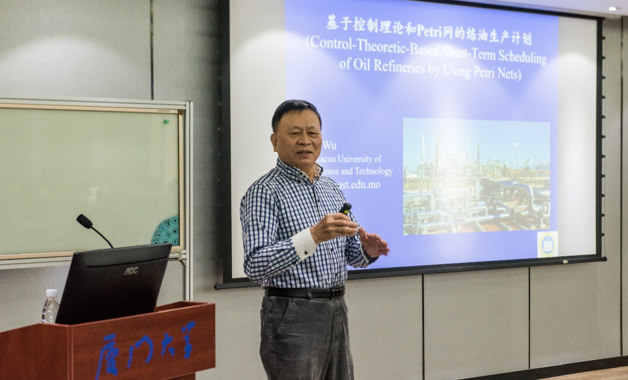 学会很荣幸地邀请到了来自澳门科技大学的伍乃骐教授、东南大学的李俊教授以及集美大学的徐轶群教授为广大学会同仁做题为“基于控制理论和Petri网的炼油生产计划”、“从工程到理论,我的实践—着色旅行商问题(CTSP)研究”及“无线自组网技术与海洋监测应用”的精彩报告。他们将理论研究成果分别应用于炼油生产、化工应用及海洋智慧监测,不忘科学研究服务社会的初心,牢记产学合作创新的使命,真正实现产学融合。