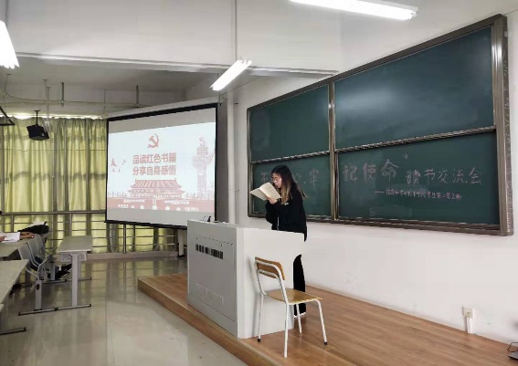 接下来,与会党员们以分组的形式各自朗读了本组所选书籍的选段并发表和交流该组组员对选段的读后感。其中,任花花、宋子裕、杨丽娜组成的小组,他们的阅读选段是《习近平关于“不忘初心、牢记使命”论述摘编》中的“当今世界正面临着前所未有的大变局,中国特色社会主义进入了新时代。”他们的读后感是:“不忘初心、牢记使命”是我们共产党员心中的信仰,也是我们脚下的力量,初心更是我们基层工作者坚守信念、致远远航的底气。青年强则国家强。我们青年一代,不但要铭记历史,珍惜来之不易的幸福生活,我们必须要“不忘初心、牢记使命”,更要为实现伟大复兴的中国梦而不懈奋斗。
