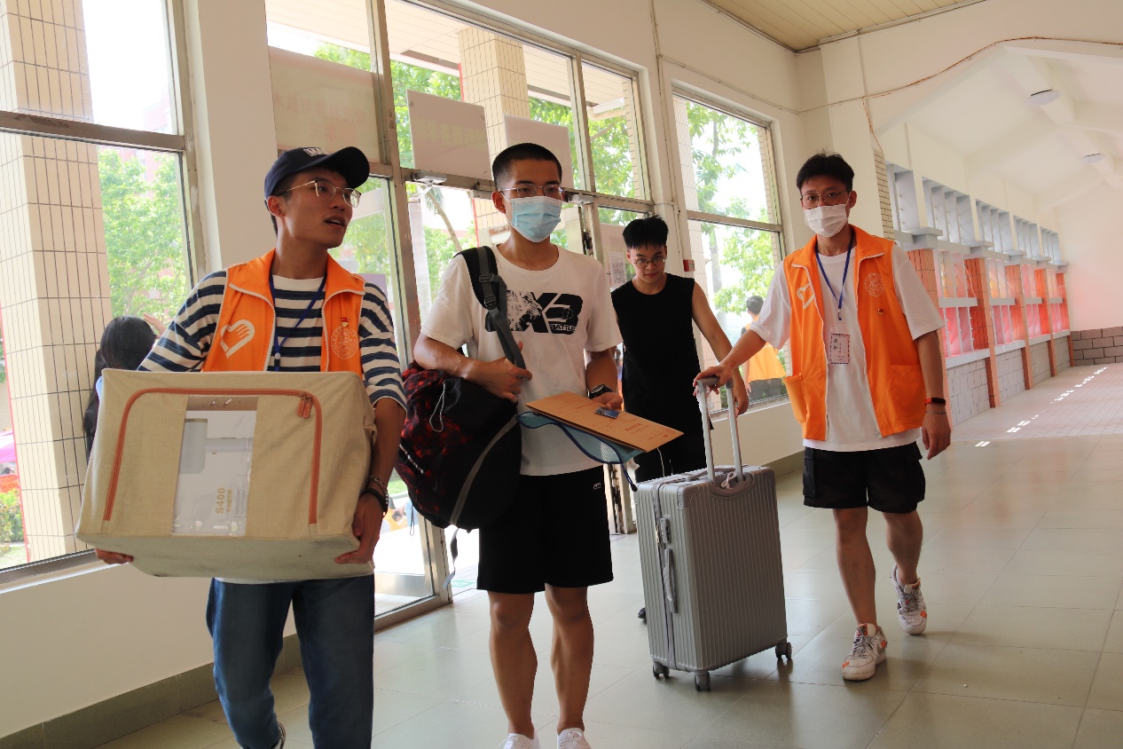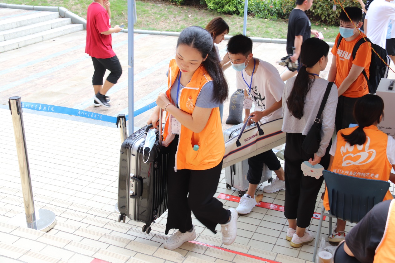 炎热的暑气充斥着校园,尽管汗水浸湿了志愿者们的衣服,但是这些都抵挡不住志愿者们的热情。看着这些新“嘉”人们脸上表露出对“嘉”园的向往与期待,志愿者们面带微笑地给他们作指引,搬运行李,帮助他们完成报道注册手续等。
