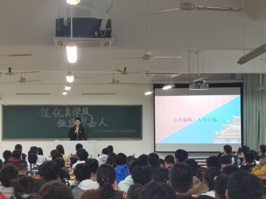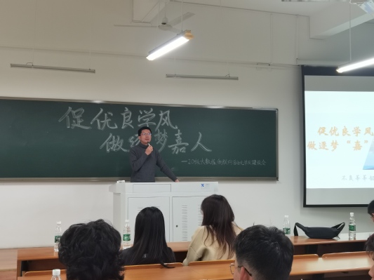 最后,史扬老师总结到:大学不是学习的终点,而是人生全新的开始。同学们更应该在大学这个舞台上展现自己。作为新时代青年,大家更应该养成优良学风,做逐梦人。相信经过今天的学风建设班会,同学们在思想上都能够有一定的进步,能掌握到更好的学习方法,提高自身的竞争力,形成优良的学风,为信院建设做好准备。