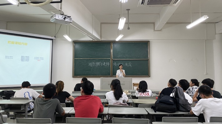据悉,“植数班”于2019年3月开班,至今已开班5期。期中考过后定期举行线下辅导活动,期末考前进行考前辅导活动,同时通过QQ群答疑形式,线上辅导长期进行。疫情期间贯彻落实“停课不停学”的防控精神,“植数班”通过钉钉平台进行线上直播辅导,实现“课业帮扶不停学”。本学期“植数班”以授课对象、授课课程和授课成效为突破点。授课对象由信息科学与技术学院扩展至全校;授课课程在原有《高等数学A》的基础上,增设《高等数学B》《微积分》《线性代数》《概率统计》四门课程;为进一步精准帮扶同学们的学业,除了原有的基础班,还增设了提高班。