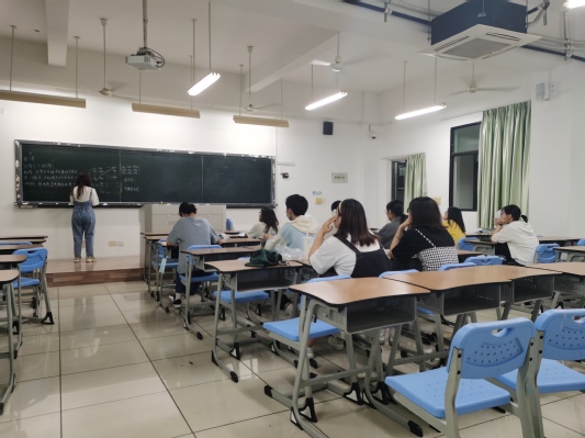 本期“植数班”于5月26日组织23名报名“植数班”小老师的同学进行面试。每位同学现场讲解一道数学题目并进行板书。在面试现场,信息科学与技术学院教工第一党支部书记、信息与计算科学教研室主任王海玲老师对参加面试的同学进行数学讲课技巧培训。王海玲老师向同学们介绍了全校数学课程的开课情况,分享了数学教学方法及教学活动的设计要求,强调了教学态度的重要性,并指出了作为主讲的同学在教学活动中应以身作则,为报名参加“植数班”辅导的同学树立榜样。