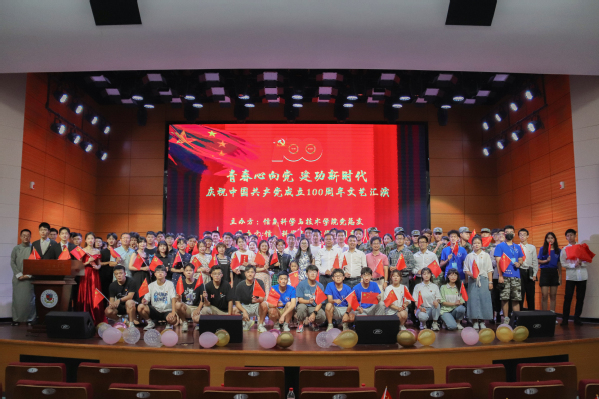 为庆祝中国共产党成立100周年,响应习近平总书记发出的“学党史、悟思想、办实事、开新局”的号召,落实学校党委关于党史学习教育的工作部署,促进青年学生赓续共产党人精神血脉,信息科学与技术学院于2021年6月6日19:30在公共教学楼1号楼101报告厅开展庆祝中国共产党成立100周年文艺汇演。
