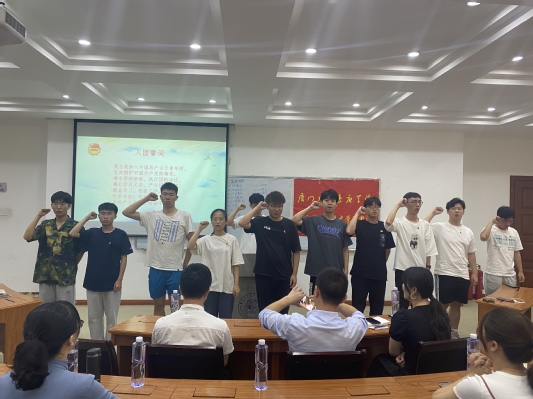 随后,13名新发展共青团团员在团旗下宣誓,在《光荣啊,共青团》团歌中正式成为一名共青团团员。