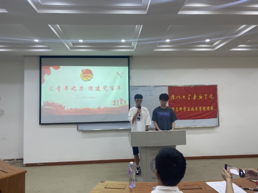 为表彰先进,树立典型,进一步激励青年团员深入学习贯彻习近平新时代中国特色社会主义思想,信息科学与技术学院团委于2021年6月11日中午在经管#207开展了“传承红色基因,迎接建党百年”优秀团支部评比暨新团员入团仪式活动。