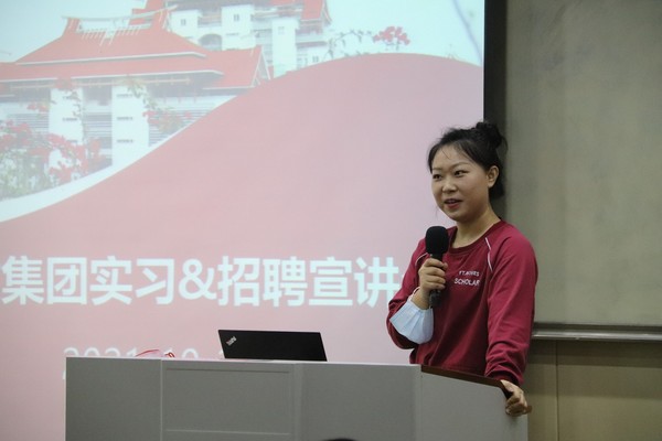 最后,副书记姚福清鼓励同学根据自身专业水平找到一个适合的就业平台,希望同学们能根据岗位需求不断提升自身技能水平,抓住和珍惜九牧集团提供的就业机会。同时,2017级计算机专业校友、价值链IT中心总经理秘书邵蓉,介绍了准备简历、准备面试、进入九牧、九牧基本情况等情况,希望学弟学妹可以成为自己的同事。