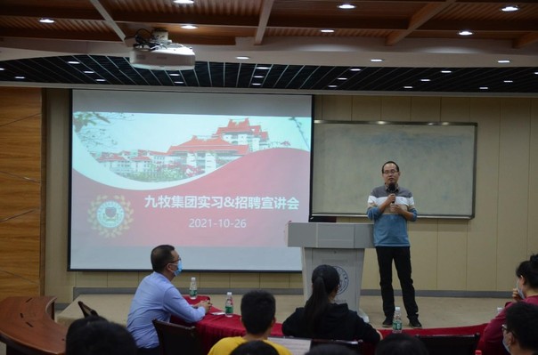首先,郭一晶副院长对九牧集团到我校举办专场招聘会表示热烈欢迎,同时鼓励同学们接下来认真倾听九牧-价值链IT中心对九牧集团基本情况和岗位需求分析,并积极参与该集团的后续招聘,争取每一个就业平台。