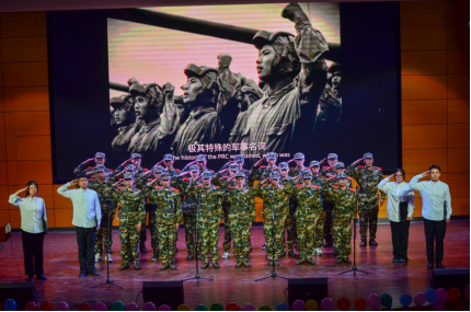 最后出场的21级自动化专业带来朗诵合唱《鸭绿江畔的呼唤》,回首亘年岁月里的硝烟,采用抒情和激情相结合的方式表达对祖国的衷心歌颂。