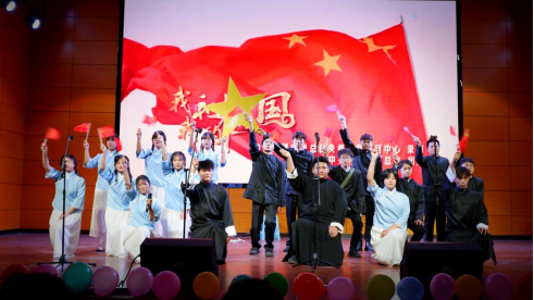 在抽奖小游戏的互动暖场下,信息学院合唱队带来《祖国不会忘记》拉开了晚会序幕。21级电子专业带来武术表演《南拳》和歌曲《中国话》,展现了当代青年对传统文化的热爱与延续。