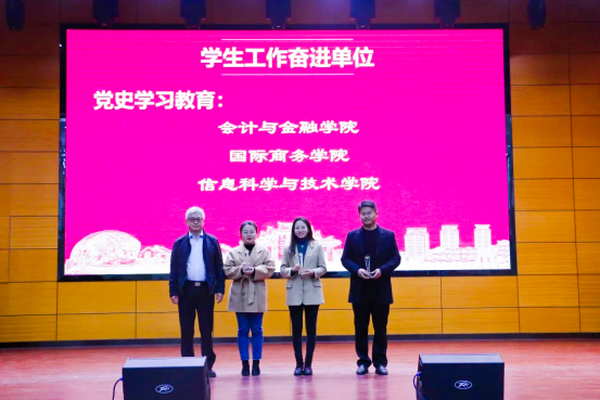 在本次总结大会表彰环节,我院荣获厦门大学嘉庚学院2021年度“学生工作先进单位“;同时,党史学习教育专项工作荣获2021年度“学生工作奋进单位”、校园疫情防控专项工作荣获2021年度“学生工作奋进单位”。