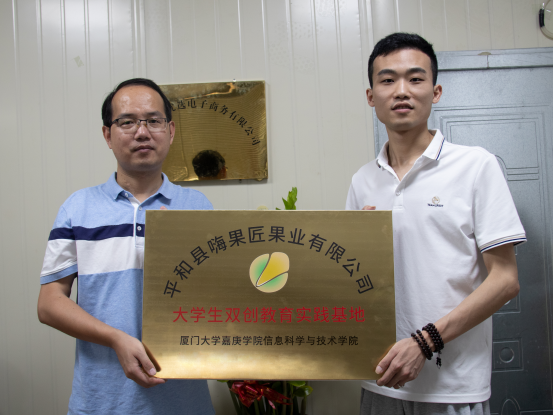 6月22日,信息科学与技术学院郭一晶副院长、党总支副书记姚福清老师一行,走访了由2013级软件工程校友陈宗佑创办的平和县嗨果匠果业有限公司。