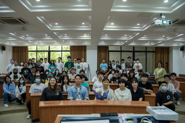 讲座结束,意犹未尽的同学们还与梁老师进行了交流互动,对大家的提问,老师均一一进行了解答,得知这是梁老师在“嘉”的最后一堂课,学生代表纷纷向老师献花并合影留念。