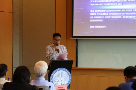 厦门大学嘉庚学院厦门校友会监事长张哲铭在大会中说到,首先祝贺信息学院厦门校友会成立,厦门大学嘉庚学院信息科学与技术学院厦门校友会的成立对嘉庚学院厦门校友会和信息学院发展是非常重要的,他希望信息学院校友理事会能够与校友及厦门校友会紧密联系,共同为学校、学院做出贡献。